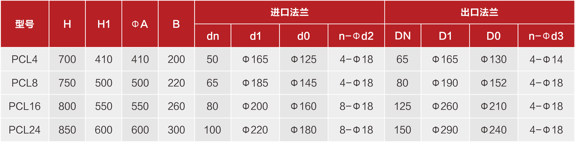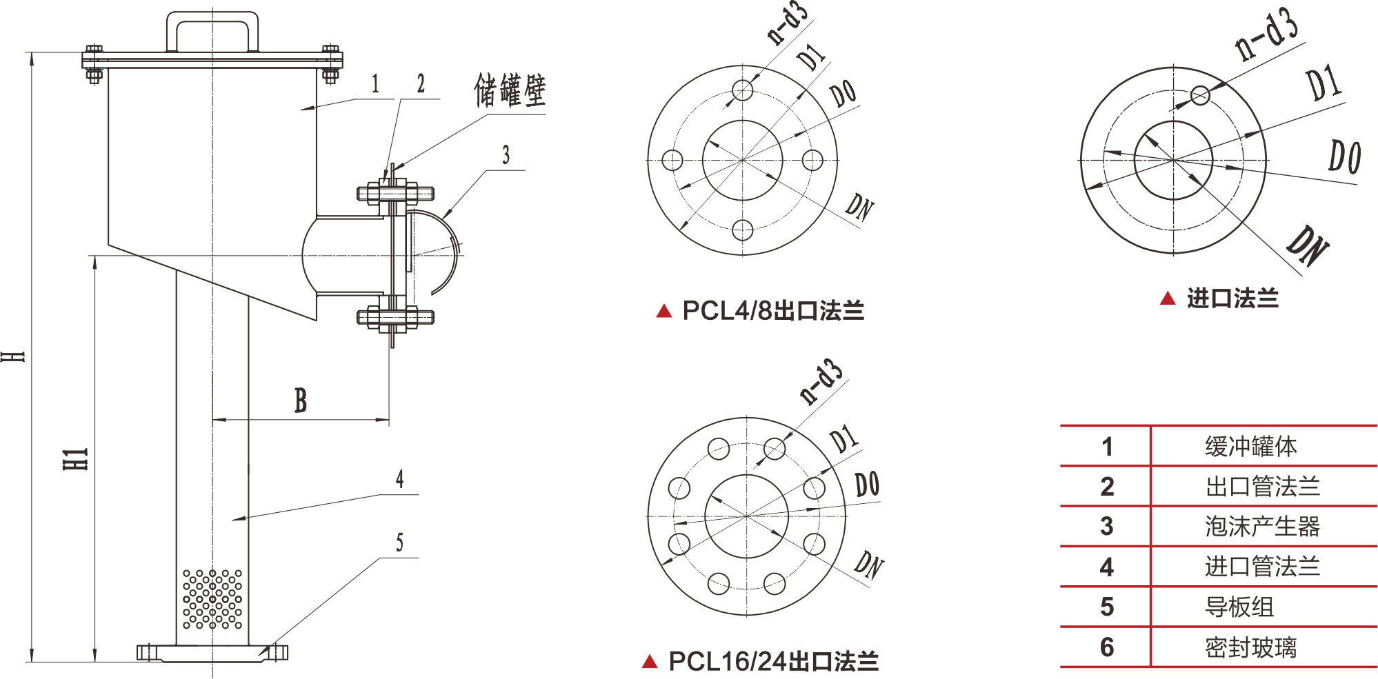 PCL系列低倍立式泡沫產(chǎn)生器外形尺寸表